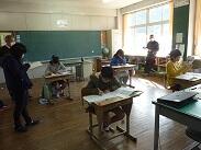5・6年生は算数の学習をしていました。今日は5年生の復習をしていました。そのため、5年生も6年生も同じ方向を向いて問題を解いていました。どの子も集中して取り組んでいて、ピーンと張り詰めた緊張感のある教室でした。