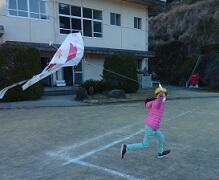 凧をあげる時に、運動場を走り回って凧をあげる子どもがいたり、凧糸を巧みに動かしながらゆったりと凧をあげる子どもがいたりしました。わずかに吹く冷たい風をうまく捉えて、一人ひとり違う凧あげを楽しんでいました。