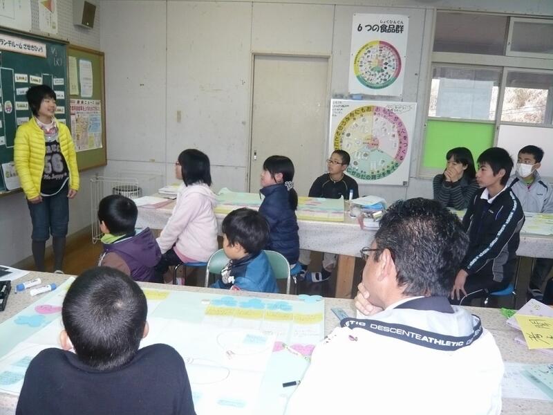 今日の1・2時間目に、今年度最後のわくわく学習(ウッジョブ諸塚)が行われました。今日は全校児童がランチルームに集まり、全員でふりかえりの時間をもちました。