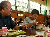 発足式の後は、応援隊の方々と給食を一緒に食べて、わくわく学習の課題や諸塚村の話をしてふれあいました。
