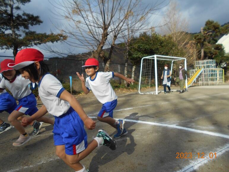 12月1日(金)は、参観日として持久走大会や餅つき大会をしました。持久走大会には、保護者の皆様はもとより、おじいちゃんやおばあちゃんも子どもたちの応援に駆けつけて下さいました。その声援により、全員自己新記録で走りきることができました。