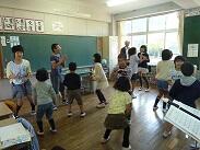 今日の4時間目「どんどんひゃらら どんひゃらら~」と元気な歌声が聞こえてきました。1・2年生が音楽の授業で「むらまつり」を歌っていたのです。朝、2年生が健康観察簿を届けに来た時に「今日、むらまつりの合奏が楽しみです」と話していたことを思い出し、1・2年生教室を覗いてみると太鼓や木琴、鉄琴を使って合奏を始めていました。間奏では跳んだり動いたりする振付もあり、とっても楽しい合奏になっていました。この時期にぴったりの音楽ですね。