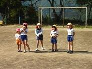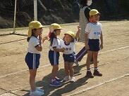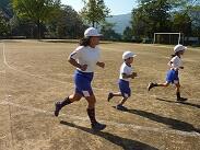 また、保育所生も今日から長距離走大会の練習がスタートしました。保育所生は遊びを通して身体を動かして、長距離走大会に向けての体力作りが始まったようです。今日は、「さるチーム」と「かにチーム」に分かれて陣取りをしていました。