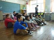 読み聞かせの後1・2年生は、色々な言葉を口にしながら何かに変身しないかなぁと試していました。