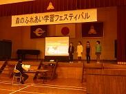 3年生が考えた植林の機械「なえぎうえーるくん」について、中学生から「危険を察知するとありましたが、どんな時に危険を察知するのですか?」と質問がありました。すると「土砂崩れが起きそうな時には音が鳴ります」と答えていました。また、木と人とのつながりをテーマにしている3年生には、中学生から「インタビューの結果を出すことで、説得力があっていいと思います」との感想がありました。