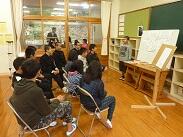組み立て作業が終わっている児童は色塗りをしました。「青を作るにはどの色とどの色を混ぜたらいいかなぁ」とか、「色を混ぜて色を作る時がありますよね。その色ができる途中の色もいい色だと去年教えてもらいました」等と言って色を塗り進めていました。