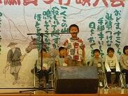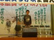 先週の土曜日、諸塚村中央公民館で第14回諸塚駄賃付け唄全国大会が行われました。本校の児童は全員この大会に出場しました。大会前日、5・6年生の担任の先生から、「うまく唄おうとせずに、自分の一番いい声を出せるように唄いなさい」とアドバイスをもらっていた子どもたち、どのような唄を聞かせてくれるのかとても楽しみでした。今年は、はじめに一般の部の唄があり、子どもたちの出番は11時30分頃からでした。