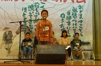 まずは児童生徒代表あいさつです。本年度は荒谷小が担当します。C学習発表会の目的や、発表を聞く時の心構えを大きな声で述べました。