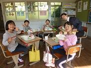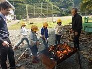 給食時間中は、1・2年生が火のそばにいられないので、校長先生が火の具合を見てくださいました。それを1年生に話すと「校長先生、一人で落ち葉を集めたり、火を見たりできるんですか?すごい!!」と驚いていました。また、「この間、おいものおやつをもらったから、今度は僕たちが3~6年生に焼きいもをあげるね」と友達に話していました。