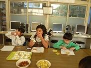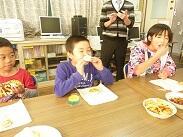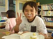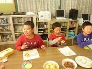 図書室で宿題をしていた1・2年生にも、これらの3種類のおやつを持っていき、みんなで試食しました。「おいしい!」、「次これ食べてみよう」、「これ2個食べてもいいですか?」などと言いながら食べる子どもたち、あっという間におやつは子どもたちのお腹に入ってしましました。
