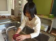 【いもほりの日に洗ったサツマイモをもう一度念入りに洗いました】