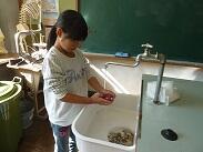 今日の3~4校時、1・2年生がいもほりで収穫したサツマイモで焼きいもをする準備をしました。焼く前にサツマイモを塩水に浸けておくとサツマイモが甘くなるそうです。そのため、たらいに塩水を準備して、サツマイモを洗って入れる作業をしていました。「焼きいも~焼きいも~」と歌を口ずさみながら歌う子どもや、「もう焼く準備はしてあるんですよ!」と運動場を指さして教えてくれる子どももいました。