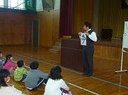 まず、クイズを出しました。「鼻と耳にはあって、口にはないものはなんでしょう?」というものです。正解は「毛」です。鼻の毛は、鼻の中の粘膜によって空気の湿度や温度を調節します。また、細菌を直接身体の中に入れない働きもしています。しかし、口には「毛」がありません。そのため、口から息を吸うと細菌などが直接身体の中に入ってきます。ところが、のどの奥には「繊毛」という毛があります。その「繊毛」が細菌などを身体に入れないように働いてくれているのです。ありがたい働きをしていくれる「繊毛」ですが、弱点があります。ある季節が苦手なのです。その季節は冬です。「繊毛」は空気が乾燥すると、動きが弱まります。したがって、今の時期はかぜ等をひきやすい時期なのです。「繊毛」が元気に働くには、身体の中に入ってくる空気を乾燥させない工夫が必要です。そこで、どのような工夫が必要か子どもたちと考えました。