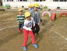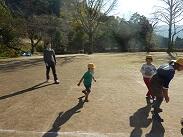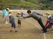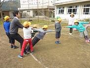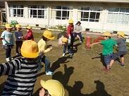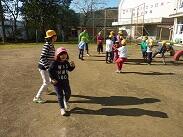 このひょうたんおには、今週保育所生が運動場で始めた遊びです。それから毎日のように、保育所生と一緒に小学生もひょうたんおにをして遊んでいます。いつ、どこから鬼が手を伸ばしてくるのか分からないスリルと、作戦を練る楽しさがとても面白い遊びでした。
