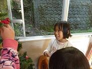 また、ふれあい会食後は1・2年生が育てているなば木を見てくださいました。そこで、元気ななば木とそうでないなば木を教えてくださったり、生しいたけと干ししいたけの栄養の違いを教えてくださったりしました。1・2年生は次第に、「この黄色いのは何ですか?」、「こっちのなば木は大丈夫ですか?」などと自分から質問をし始め、しいたけのハテナを次々に解決していきました。