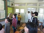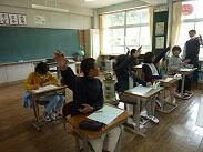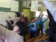 今日は、学習発表会にもお越しくださった宮崎大学の先生方と学生の方が荒谷小にお越しくださいました。なぜ、行事も何もない日に来校されたのでしょう。その理由は、複式指導の様子をご覧になるためにわざわざお越しくださったのです。朝8時過ぎには荒谷小に来られ、1時間目から4時間目まで授業の様子をご覧になられました。子どもたちは緊張するかなぁと思っていましたが、いつも通り楽しそうに学習をしていました。