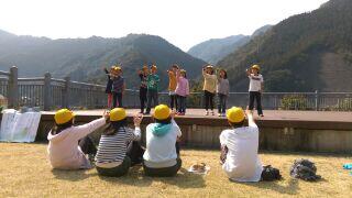 神楽・箕舞が終わると子どもたちは山のてっぺんにのぼって「お別れ会」をしました。一体何が行われるのか子どもたちに聞いてみると、「地元の林業会社の社長さんが毎年プレゼントをくれます」と話をしていました。まだかまだかと子どもたちがワクワクして待っていると、地元の林業会社の方が来てくださいました。