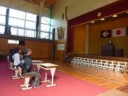 「卒業生入場」という声とともに、4人の卒業生が入場してきました。堂々と前を見て入場する子、目をうるうるさせながら入場する子など思い思いの表情で入場してきました。
