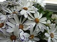 卒業式に向けて、式場に飾る花を1・2年生の担任の先生が毎日毎日お世話をしています。1年がかりで育ててきた花々。近頃、教室やランチルームにサイネリアを置いて育てています。この花は寒いところに置いておくといけないそうです。そのサイネリア、1・2年生の担任の先生が話すには、「他の花より小さくてなかなか育たんかったのが1つあってね、それに『ラスカル』っていう名前をつけたとよ。そして『いいぞラスカル』って励ましながら育てたら、一番大きくなったわ」とのことです。また「育っているのになかなか花をつけないのには『ベジータ』ってつけたとよ。『ベジータ』は気難しいとよねぇ」と話されていました。1・2年生も「一輪も花を咲かせてないとよ!」と他の子どもたちに教えていました。他にも「亀仙人」と名付けられたサイネリアもあるそうです。これは大きくそだっているからだそうです。