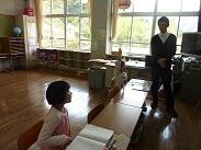 お昼休みは保育所生と一緒に「しっぽ取り」をして、汗びっしょりになりました。その後は内科検診です。この保健行事も保育所生と一緒に行います。自分の名前をはっきりと言って、あいさつも大きな声でできていました。子どもたちの動きがスムーズだったので、あっという間に終わりました。