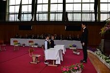 入学式では「新入生氏名点呼」があります。2名の新入生は、担任の先生に名前を呼ばれると、とても元気な声で返事をしました。