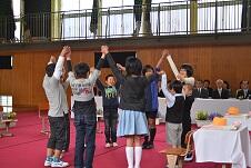 その後、校長先生や教育委員会の方、PTA会長さんからお祝いの言葉をいただきました。その中で、新入生は校長先生と3つの約束をしました。1つ目は「友達と仲良くして命を大切にすること」、2つ目は「元気なあいさつをすること」、3つ目は「楽しく勉強をすること」です。「楽しく勉強すること」のコツとして「話をする人の方を見てしっかり聞くこと」を教えてくださいました。この3つの約束は1年生だけでなく上級生のみんなにも必要な力です。また、中学校、高校そして社会に出てもとても大切なことです。3つの約束、守れるようにいつも意識していきたいですね。