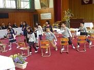 【毎回、表現集会のテーマソングを歌って踊ってスタートします】