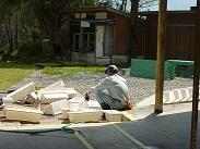 「何の木だろう?」、「かるーい」、「かけやすい」と子どもたちは嬉しそうでした。また、木の香りを確かめる子どももいました。