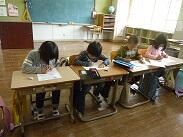 6校時、子どもたちの様子を見てみると1・2年生は静かに宿題タイムでした。横1列になって、もくもくと問題を解いていました。3年生は図書室で宿題タイムでした。「『あかねこスキル』と『うつしまるくん』と漢字プリントがあるんです。あ!そうだ。今日算数を終わらせて、明日国語をしよう!」と計画を立てながら取り組んでいました。