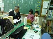 それから約5分後、またしても校長先生を訪ねて、かわいいお客さんがやってきました。それは今週の月曜日に入学をした新1年生です。1時間目は自己紹介をする学習のようです。人数が多ければ子ども同士で自己紹介をするのですが、2人しかいないので、校長室や職員室、保健室にいる先生たちに自己紹介をして回りました。