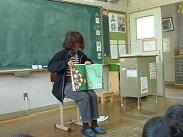 2冊目は「小学生のボクは、鬼のようなお母さんにナスビを売らされました。」です。インパクトのある題名と絵に「どのようなお話なのだろう」と思ったのか、先ほどまでの雰囲気とは違う雰囲気に包まれました。このお話は、今から約30年前に四国の徳島県阿波市土成町という町とその周辺であった本当のお話だそうです。「ボク」が生まれたのはお母さんが40歳、お父さんが50歳くらいの時だったそうです。このお家は農家でナスビを作っていました。決して裕福ではないけれど、お母さんの笑い声がいっぱいのお家です。しかし「ボク」が10歳くらいのころ、お母さんが鬼の形相で、市場で売れないナスビを「これひとりでひとふくろ100円で売ってきなさい!」と言いました。それまでいつも笑っていたお母さんが、急に鬼のようになってしまった理由は・・・。親が子どもを思う気持ちと、子ども時代の切ない気持ち、大きな壁を目の前にした時の気持ち等、心にじーんとくるお話でした。
