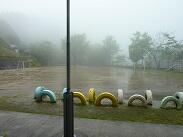 今日は朝からずっと雨が降り続いています。運動場には霞が出てきたり消えたりしています。