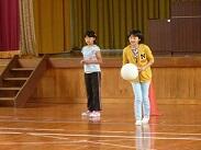 雨の日の昼休み、子どもたちは全校児童で体育館で遊びます。今日はドッヂボールをしている子どもたちとバスケットのシュートの練習をしている子どもたちがいました。ドッヂボールでは1年生は2回当たったら外野に行くという特別ルールを設けて、みんなが楽しめるように工夫していました。バスケットでは、何度も何度もシュートの練習をして技を磨いていました。