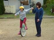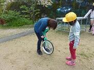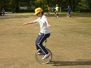 2~6年生は、昨年度自分が使っていた一輪車より少し大きめの一輪車を使っています。そのため、高さが合わなかったり、思うように乗れなかったりしていました。