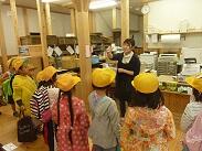 その後、地場産品を売っているお店の見学に行きました。まずは、お店の商品見学です。お米やしいたけ、クッキーにドレッシング、こんにゃくに木のつみき、杉玉など品物はバラエティに富んでいました。こんにゃくは、本校児童の保護者の方が作られているとあって、その児童は「これ!これ作ってるっちゃが」と誇らしげな表情でした。ここでも、「お店屋さんになりたい人?」と尋ねるとたくさんの子どもたちが手を挙げていました。また、スタッフの方から「算数をたくさん勉強して計算ができるようになったらお店屋さんになれるよ」とか「国語を勉強して、作文を上手に書けるようになったら、お店の品物のPRも書けるから役に立つよ」とアドバイスをいただきました。
