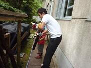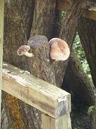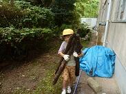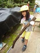 5校時には、「ふせこみ」をしていたなば木を移動して、なば木置き場に立てかける作業をしました。「ふせこみ」をしている間にしいたけが出てきているなば木もあれば、黄色いきのこが出てきているなば木もありました。1年生は競うようになば木を運び、「僕は2本もてる」、「僕は3本もてる」等と言いながら重たいなば木を一生懸命運んでいました。