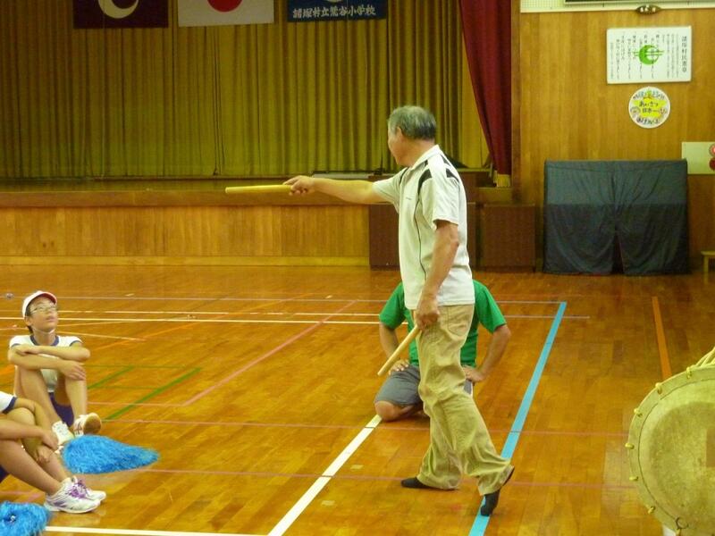 今日は、動き方の確認をしました。先者と呼ばれる子どもたち(6年生)に続いて、他の子どもたちも動いていきますが、その先者の動き方を地域の方が教えてくださいました。