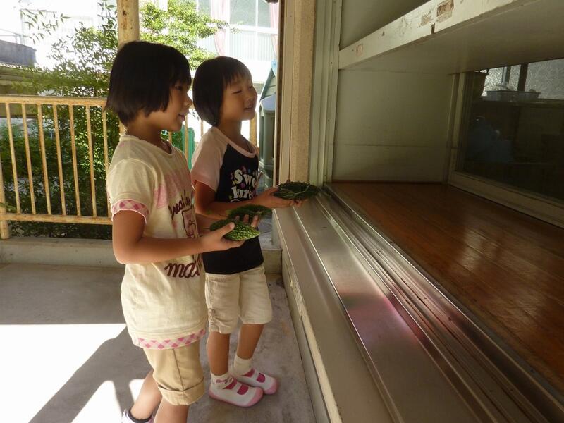 新鮮なゴーヤを受け取った調理員の先生、どんな夏野菜カレーを作ってくれるのか楽しみですね。