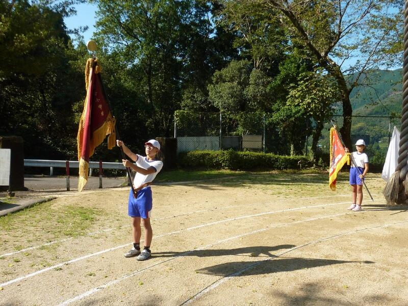 1・2年生は、はちまきや旗を洗濯して干しました。3・4年生は神楽で使用したハッピをたたんだり、リレーのバトン等の片づけ、5・6年生は看板等を体育館に片付けました。今回の運動会で、入退場門の看板が老朽化していること、またそれを支える柱のペンキも剥げていることが分かり、新しく作りかえることにしました。早速5・6年生が片付けの時間にペンキを持ってきて、柱をきれいに塗ってくれました。途中、ズボンに白いペンキが付くというハプニングもありましたが、それをも楽しく笑い飛ばし、みんなで手分けしながら一生懸命塗ってくれました。看板は5・6年生担任の先生が作成してくださいました。