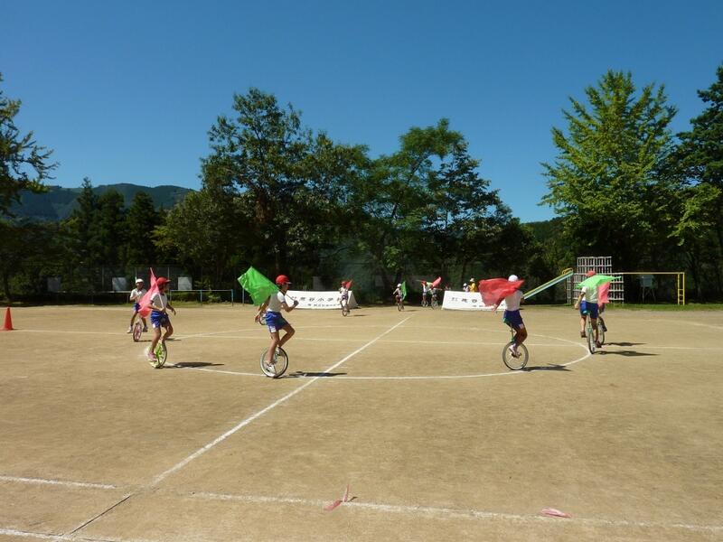 お昼ごはんもそこそこに、子どもたちは午後の部の一輪車の練習を始めました。この一輪車、今年度は旗を持って行うこと、1年生もずっと演技に参加すること、1学期には一輪車のプロの方々にご指導いただいたこと等、昨年度から進化した部分がたくさんありました。それだけ子どもたちは難易度の高い技にも挑戦しましたし、練習に費やす時間も多かったと思います。それぞれの子どもたちの真剣な表情や、一所懸命な姿、技を成功した時の安堵と喜びの表情、それら一つ一つが見ている人たちを釘づけにし、感動を与えました。とっても素晴らしい演技でした。今までの努力が見事に表れましたね。