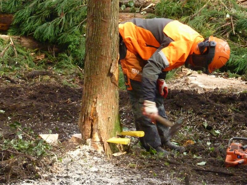 【はしごや椅子を使ったり、木に登って切ってくださったりしました】