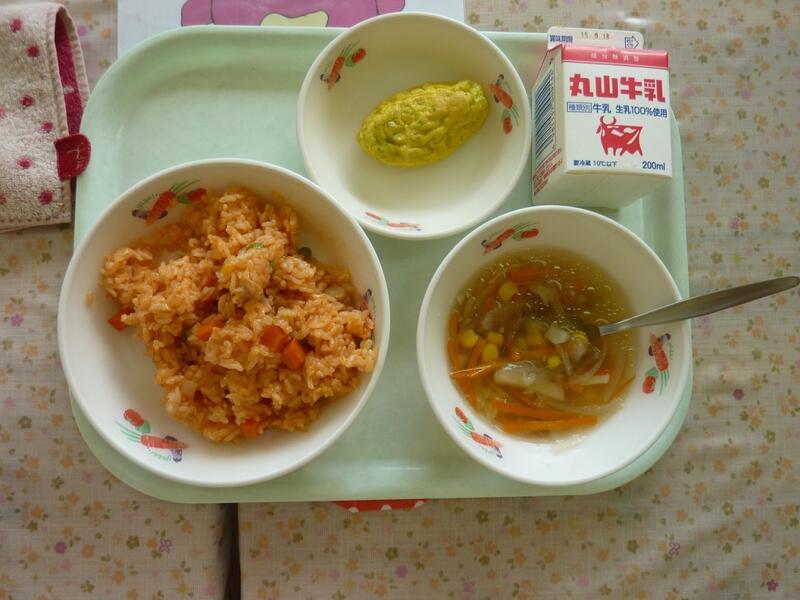 給食の時間になり、ランチルームに行くとテーブルの上には何かがセッティングしてありました。