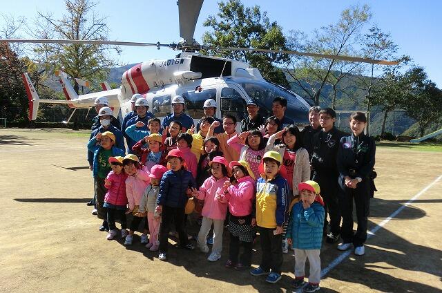 11月11日、役場や消防団のみなさんも参加して救急搬送の訓練及びヘリの展示がありました。ドクターヘリについての説明を受け、ヘリにも乗せていただき、子どもたち(保育所生も一緒)は大感激でした。5名の乗務員の方々には、詳しく説明をいただき、子どもたちもドクターヘリへの関心が高まったことと思います。貴重な体験、ありがとうございました。