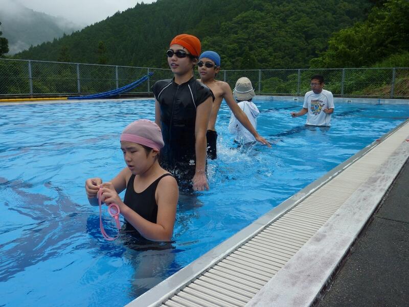 そしていよいよプールの中に入ります。水着になると少し肌寒くぶるぶる震えている子どももいましたが、水の中に入ると「あれ?ぬるい」と言ってすぐに水に慣れていました。