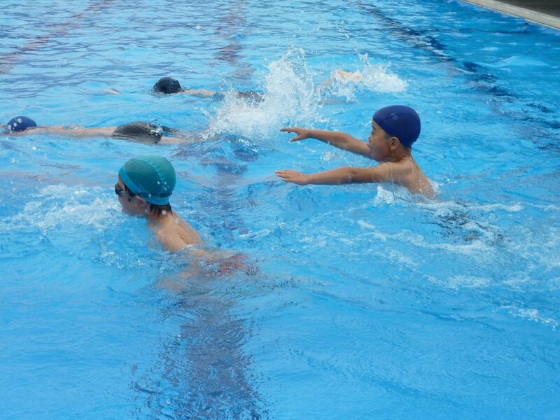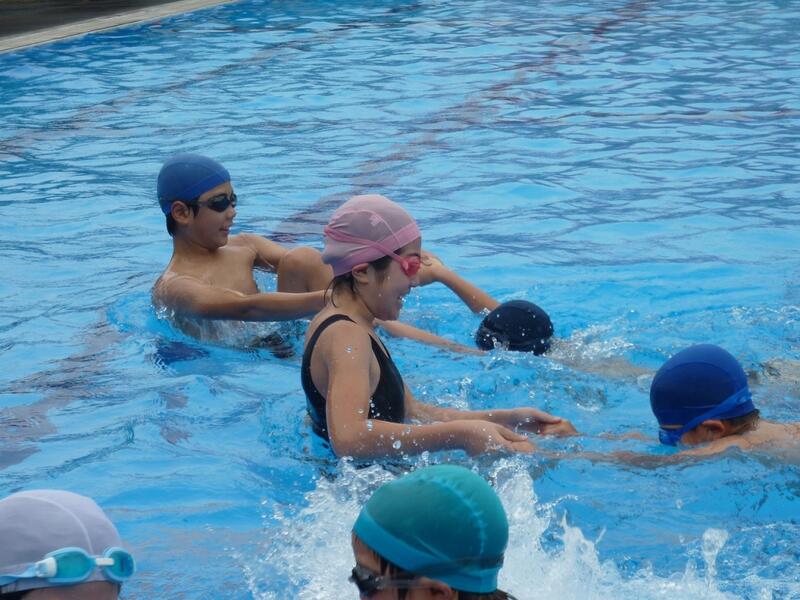 その後、少しだけ泳ぐ練習をしました。上学年が下学年の手を引いて泳いだり、その後2~6年生ははクロールで泳いだりしました。