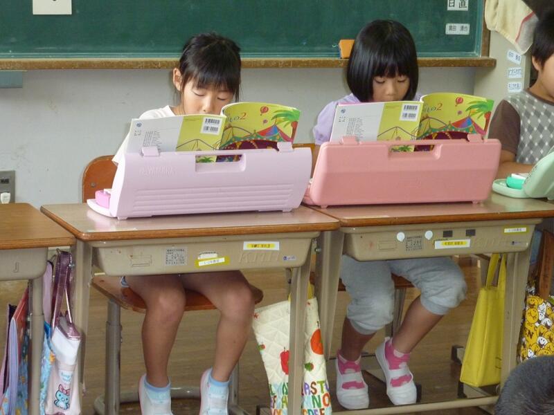 【1人で練習した後、その後ペアで発表の仕方を見合い、感想を言い合いました。】