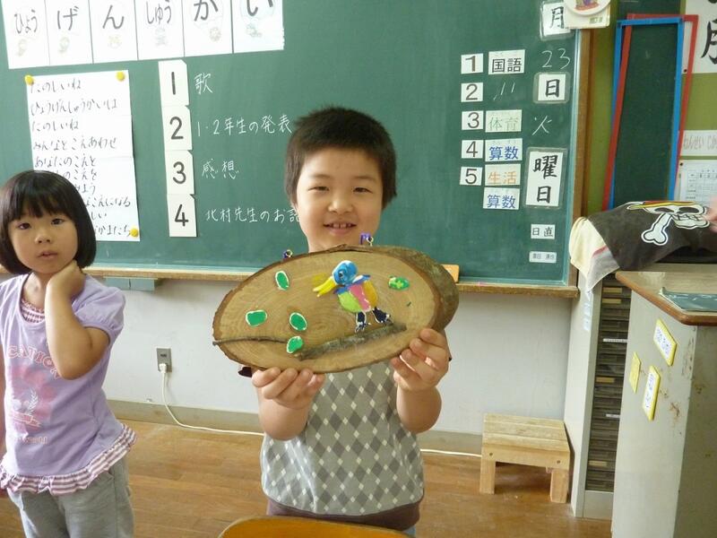 もう1人の2年生は「きれいな鳥できた」という作文でした。むかばき宿泊学習の初日、雨のためトレッキングができずに紙ねんどと木のクラフト作りを行いました。その時に「鳥を作ろう!」と考え、すぐにその絵は浮かんできたそうです。しかし、紙ねんどで鳥を作るのは難しかったようです。その時、むかばきの先生から「足を大きくするといいよ」とアドバイスをもらい、ステキな鳥ができたそうです。