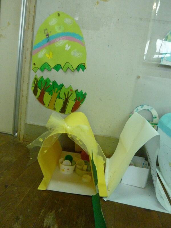 担任の先生によると、これから牛乳パックでお店を何軒も作る計画だそうです。わくわくのひよこを育てる上で楽しい環境を作っている3・4年生、このわくわく感をもってウッジョブにも意欲的に取り組んでくれると思います。