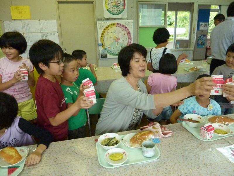 5・6年生は給食前におみそ汁を食べたため、給食を食べる前から「おなかいっぱいです・・・。」と話す子どももいたそうです。でも、おいしい給食を目にすると食べずにはいられなかったことでしょう。荒谷小の給食もおいしいですが、諸塚小で食べる給食も大変おいしかったです。