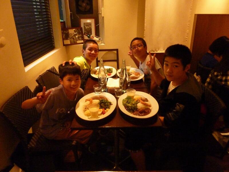その後、同じ建物の中にあるフランス料理のお店で夕食を食べました。このお店は事前に子どもたちの好きな食べ物を調べてくださり、それをベースに作ってくださいました。